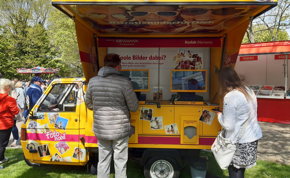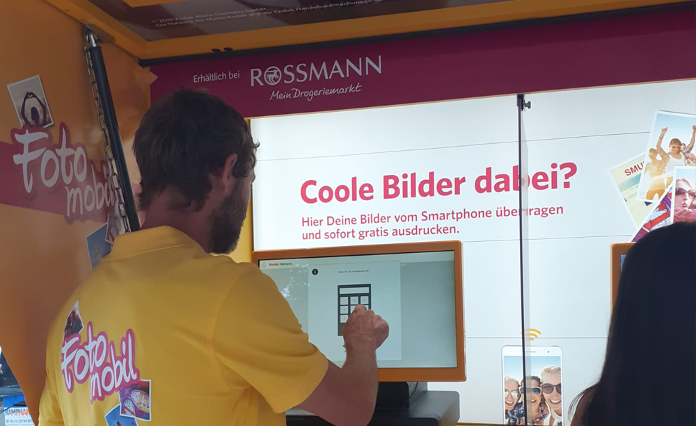 Mit der FotoApe können Fotos direkt vom Handy heruntergeladen und in bester Qualität ausgedruckt werden. Das Tool wird gern genutzt und ist ideal für Promotions, Events und Festivals.