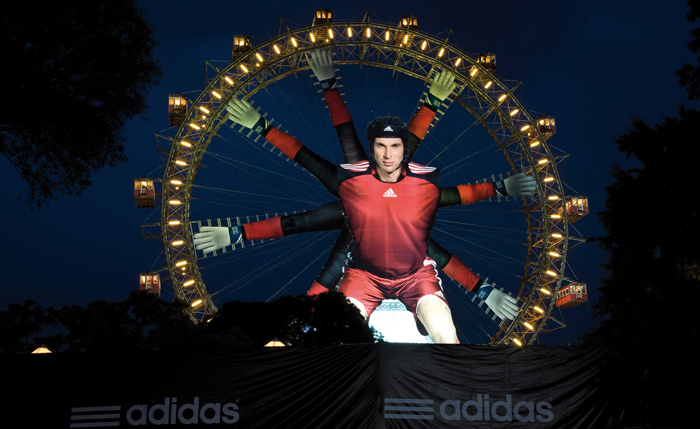 Welttorhüter Petr Cech mit 7 Armen am Prater Riesenrad war DAS Motiv der EURO 2008 in Österreich – die außergewöhnliche Riesen-Installation wurde vielfach Hintergrund-Motiv bei TV Berichten aus der österreichischen Hauptstadt. Die bisher größte bewegte OOH Installation wurde national und international vielfach ausgezeichnet – redaktionelle Berichte in aller Welt bescherten dem Kunden adidas eine vielfache Multiplikation ihrer Botschaft „Impossible is nothing“. Für MOVE it MEDIA gilt das auch bei Projekten und Installationen!